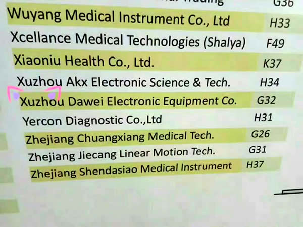 徐州大為醫療展位公布情況
